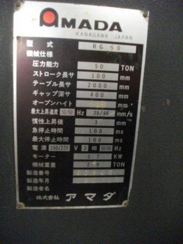 プレスブレーキ【2207056】アマダ製RG-50型買取買取