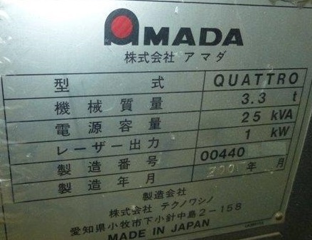 レーザー加工機【2305013】アマダ製レーザー加工機クアトロ買取