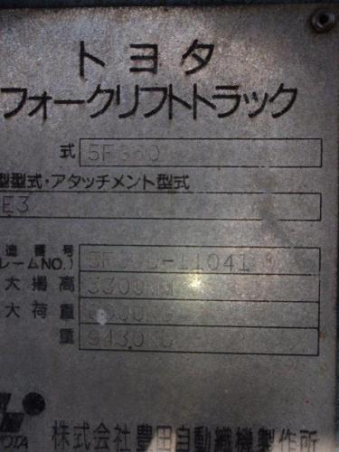 フォークリフト【2201024】TOYOTA製フォークリフト5FG60買取