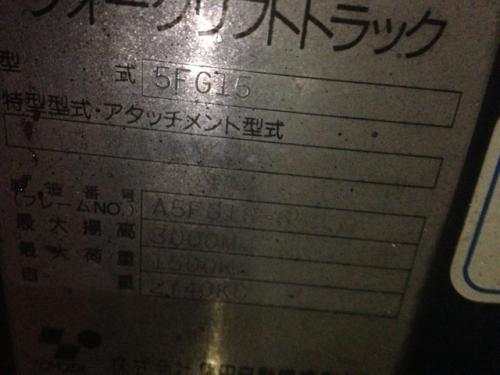 ホーム > 買取実績  > フォークリフト  > フォークリフト【2403520】トヨタフォークリフト5FG15買取