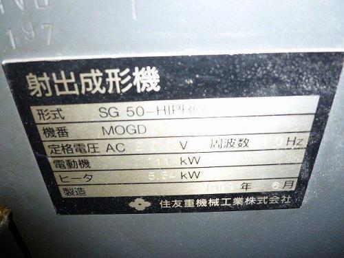 プラスチック成形機【2002002】住友製中古プラスチック射出成形機SG-50H-MⅡ1989年製買
