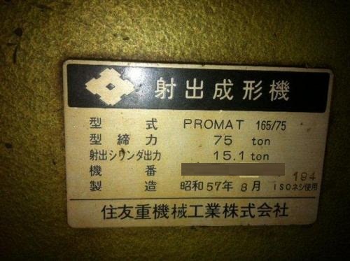 射出成形機【2203089】住友 PROMAT 165/75 買取