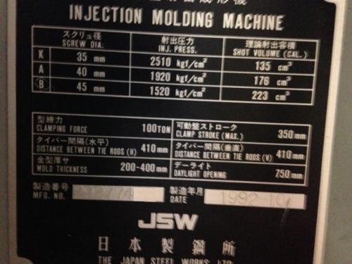 ホーム > 買取実績  > 成形機  > その他  > 成型機【2403507】JSW製100t成型機 1992年式