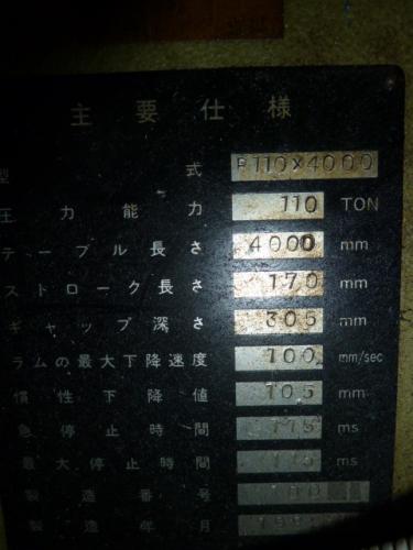 鍛圧機械【2406803】小松製P110×4000型1982年買取