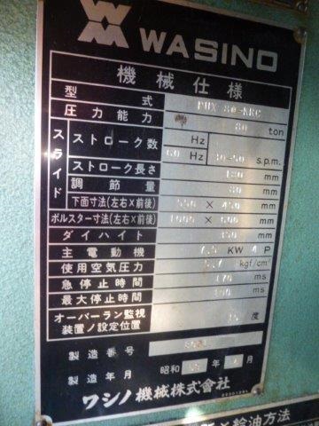 鍛圧機械【2311053】ワシノ80tプレス 1986年製買取