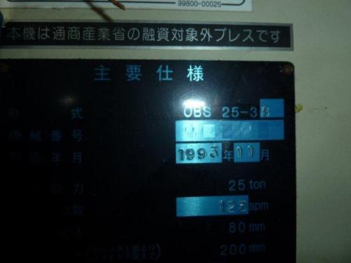 ホーム > 買取実績 > プレス機械 > プレス機械【2209032】小松製プレス機械コマツOBS25-3B 1993年製買取