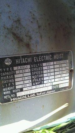 ホーム > 買取実績 > クレーン > クレーン【2112057】HITACHI ELECTRIC HOIST クレーン 1999年製買取