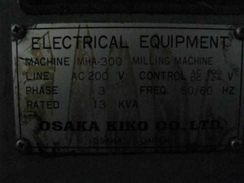 フライス盤【2111094】大阪機工 MHA300Ⅱ 1988年製 NCベット型フライス盤 買取