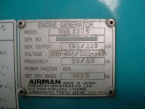 ホーム > 買取実績  > 発電機  > 発電機【2008051】北越工業㈱製ディーゼルエンジン中古発電機SDG220S型2002年製買取