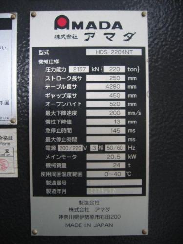 ベンダー【2005001】アマダ製中古板金機械ベンダーHDS-2204NT型2005年製買取