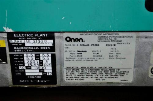 建設機械【2101077】オナン製発電機5.5HGJAE-2136B買取
