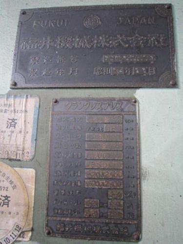 板金機械【2101028】中古板金機械福井機械製クランクレスプレス昭和43年製買取