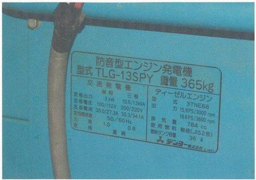 建設機械【2010029】デンヨー製中古建設機械防音型エンジン発電機TTLG-13SPY型買取