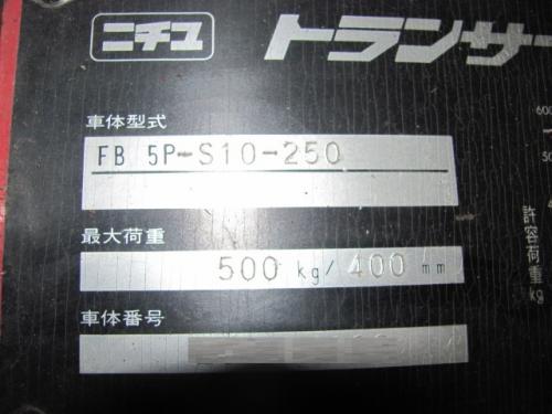 フォークリフト【2007030】ニチユ製中古バッテリー500kフォークリフトFB5P買取