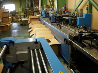 カット⇒ラベル貼り⇒検査機械⇒製本機