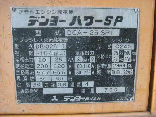 発電機買取【2301651】デンヨー製 DCA-25SPI 年式:不明 発電機買取