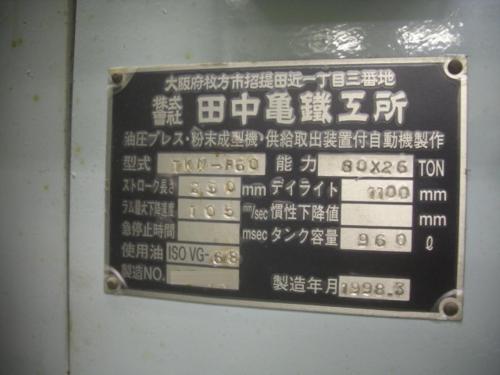 鍛圧機械買取【2301647】田中亀鐵工所製 TKM-B60 年式:1998年製 鍛圧機械買取